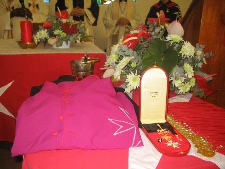 Fr. Ndaba blesses the new vestments (cassock & mozetta) and insignia (cross) of the conventual chaplain ad honorem