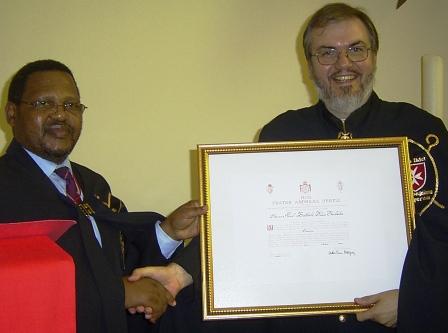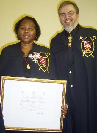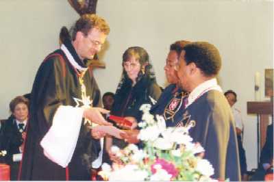 Mrs. Clare Kalkwarf (deceased), Dr. Paul Thabethe and Mrs. Nokuthula Thabethe with the Silver Medal of the "Order pro merito melitensi" (9.7.2000)