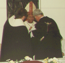 Rt. Rev. Bishop Mansuet Dela Biyase of Eshowe with the Grand Cross of the "Order pro piis meritis" (3.9.1996)